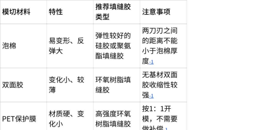 这说明了填缝胶的选择与刀模设计密切相关的重要性。