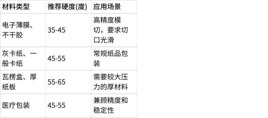 较高的硬度提供更强的支撑力,适用于厚材料模切;较低的硬度则提供更好的灵活性,适用于薄材料或高精度模切。