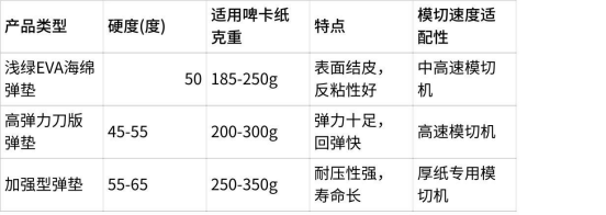 根据不同厚度和类型的啤卡纸,深华印材提供了多种规格的刀版弹垫: